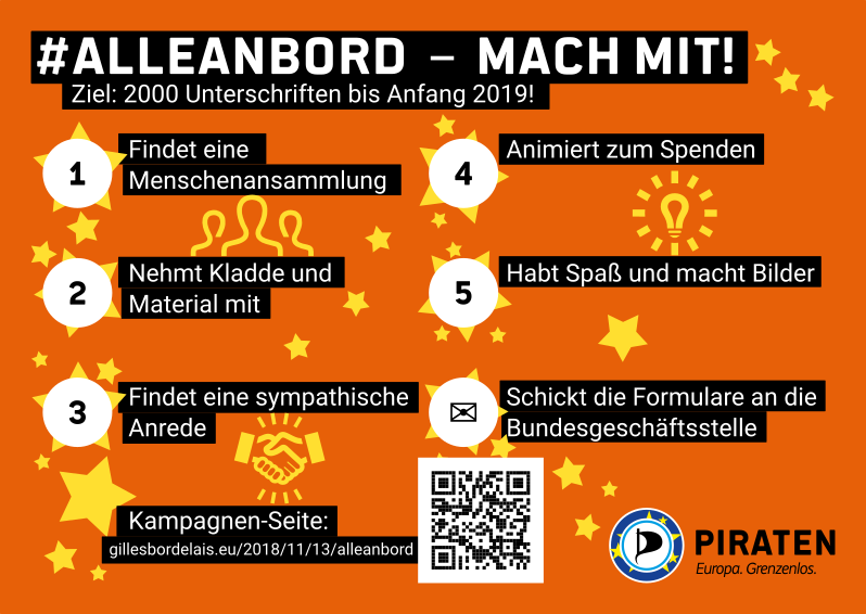 Ich halte jeden Aufruf, nicht für die Piraten zu stimmen, für einen Schlag ins Gesicht tausender Aktivistinnen und Aktivisten. Wer ein freies Internet will, muss und kann nur die Piraten wählen. Die politische Konkurrenz hat Angst vor der Moderne, Angst vor mehr Mitsprache der Bürgerinnen und Bürger. Europa braucht ein Update. Europa braucht Piraten.